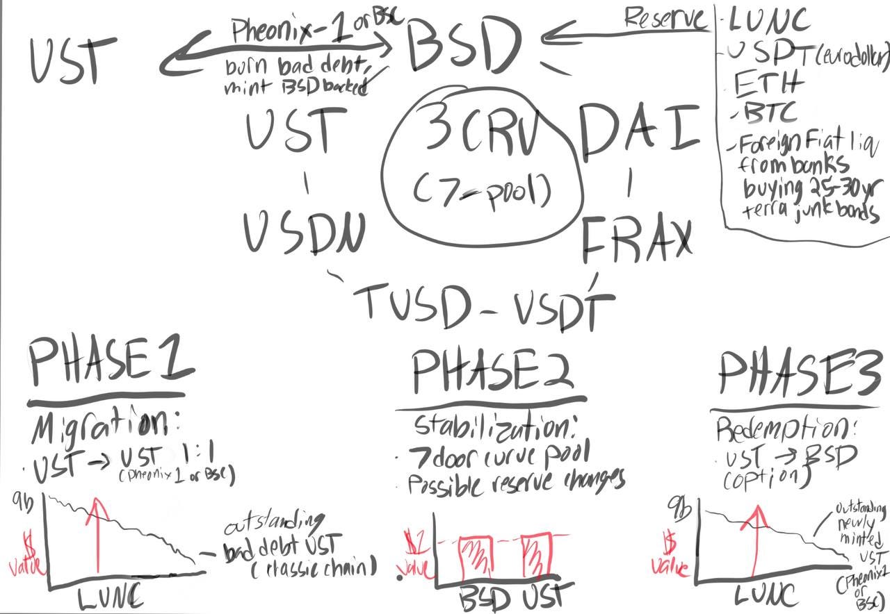 After the migration of UST and newly minted UST collateralized by BSD, there will be a period of instability with BSD and UST due to LUNC profit takers. After the bad debt on the classic chain is cleared, and BSD is holding the weight on their shoulders, LUNC will prosper on a clean slate of no more UST classic to stabilize. There will be two methods to provide stability. First, the reserves for BSD and secondly, liquidity pool to be built on Curve Finance app. Reserves will be a combination of supply, as well as possibly proceeds from terra classic bond sales. Liquidity will come from a pool comprised of other stable coins. Recently, Binance acquired Curve DAO tokens, allowing them governance rights to adjust stable coin pools on Curve Finance. This will enhance swapping capabilities for the two coins using a large pool of other stable coins. This, along with reserves for BSD will help stabilize the value and protect against LUNC sellers.
