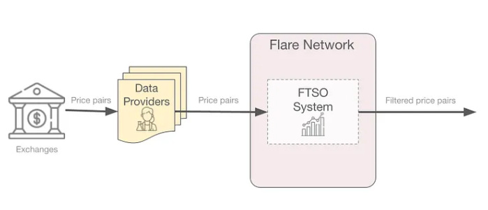 The use of oracle contract enhances price feeding for dApps from trusted providers. Flare Time Series Oracle (FTSO) has around 100 decentralized providers of data, fetching data from exchanges, and receiving rewards. The process of spitting out a single price estimate briefly includes: a short interval in which providers must submit a hashed version of data (verification of any plagiarized numbers) and a weighted medium calculation of the data (based on providers’ voting power). Submissions close to the medium are rewarded.